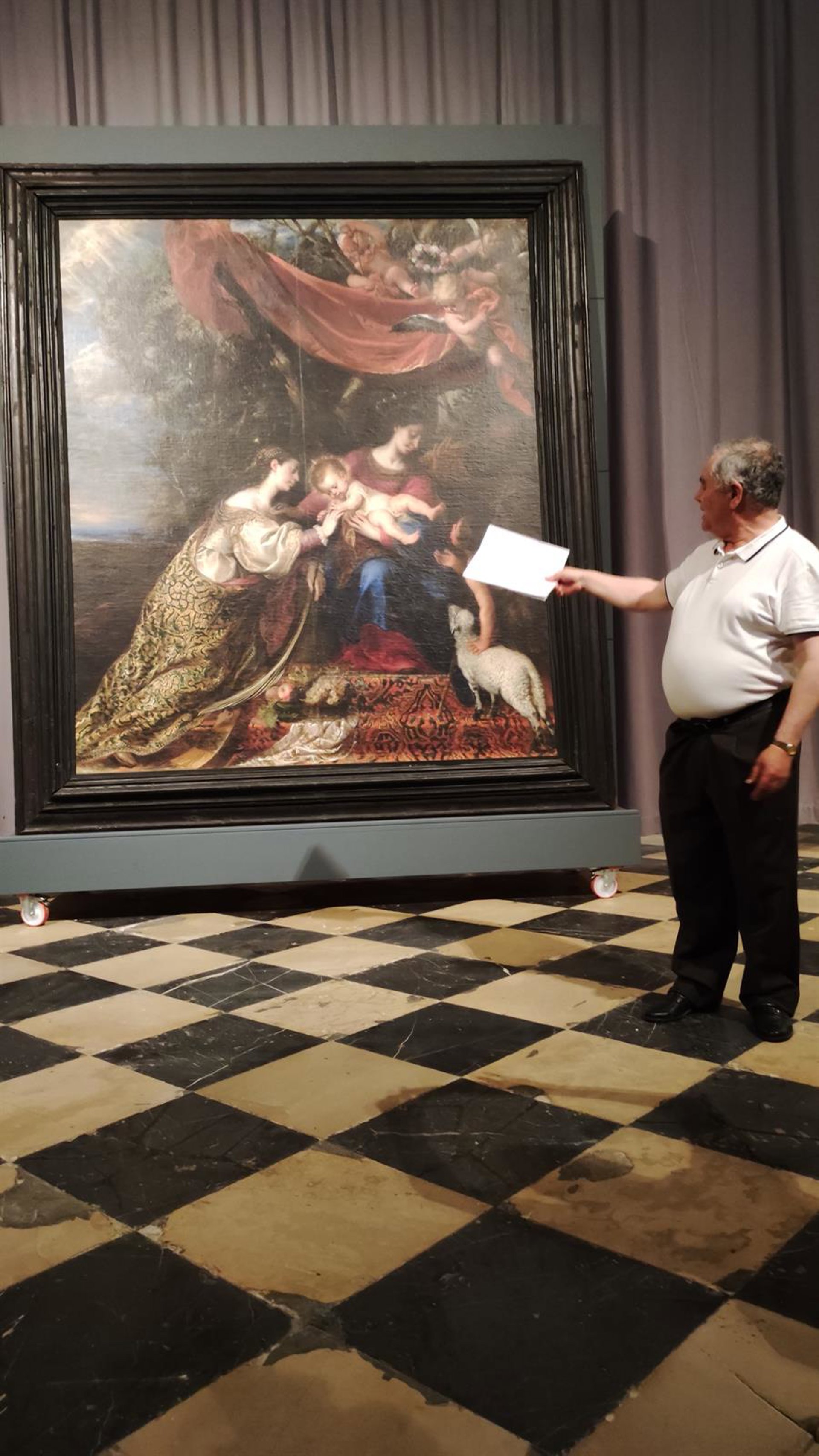 Calvo muestra una de las obras de la muestra Renacer en la catedral de Palencia. - EUROPA PRESS