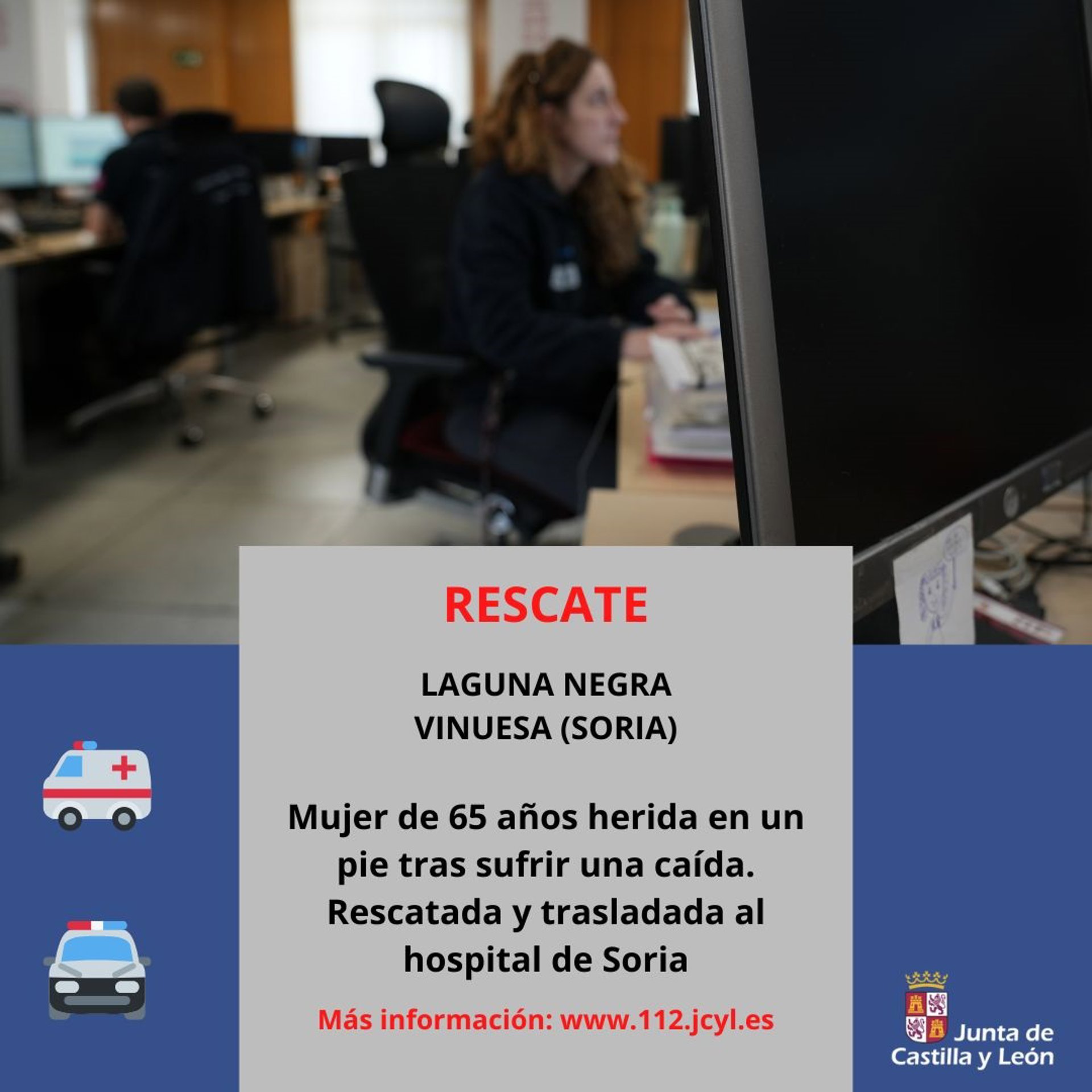 Imagen con información del rescate de una mujer de 65 años en Vinuesa (Soria). - 112 CYL