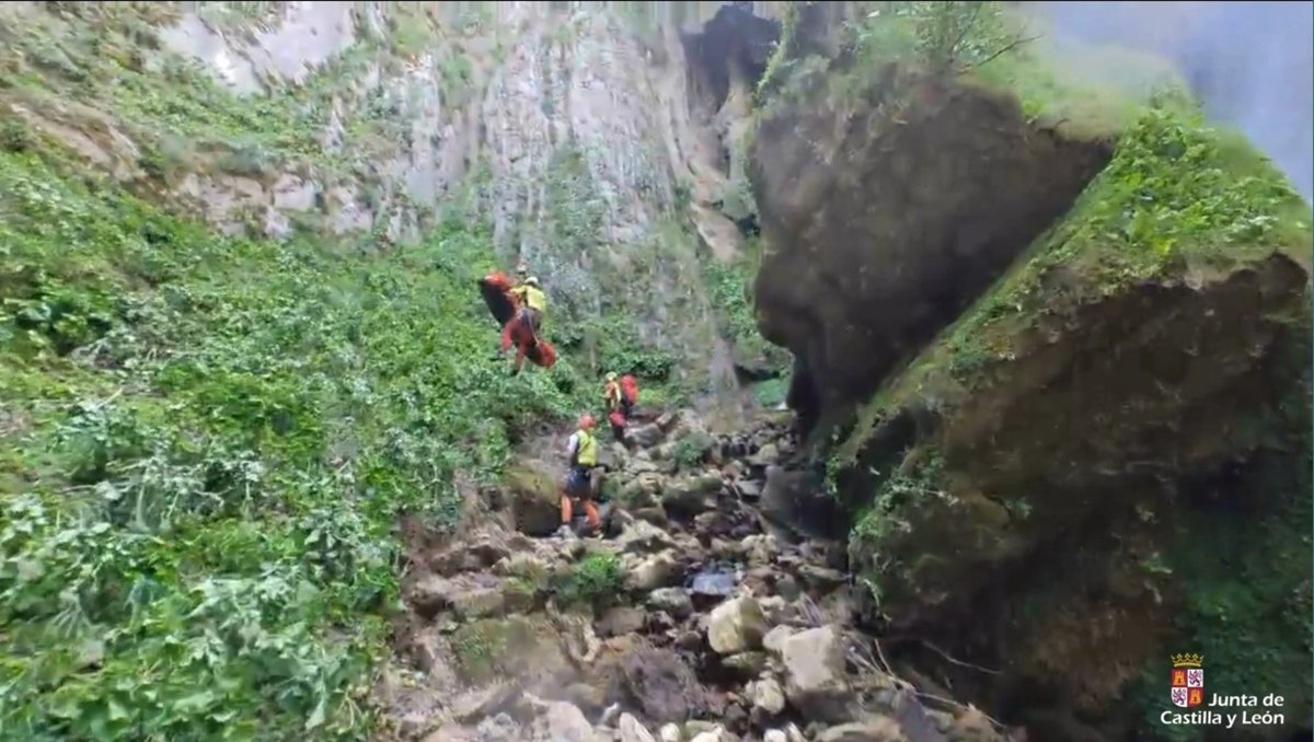 Un mujer de 43 años herida ha sido rescatada tras sufrir una caída desde una altura de seis metros cuando hacía rapel en la parte exterior del barranco de la Cueva de Valporquero, en el término municipal de Vegacervera (León).