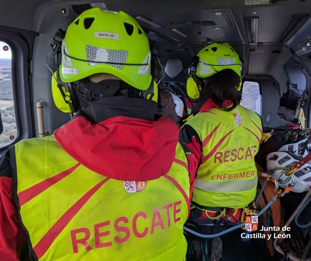 En un primer momento ha acudido una patrulla de la Guardia Civil (COS) de Valladolid para auxiliar al cazador pero al llegar a zona han comunicado que era necesario el helicóptero de rescate, por lo que el técnico del Centro Coordinador de Emergencias ha movilizado uno de la Junta de Castilla y León con dos rescatadores, una de ellas enfermera.