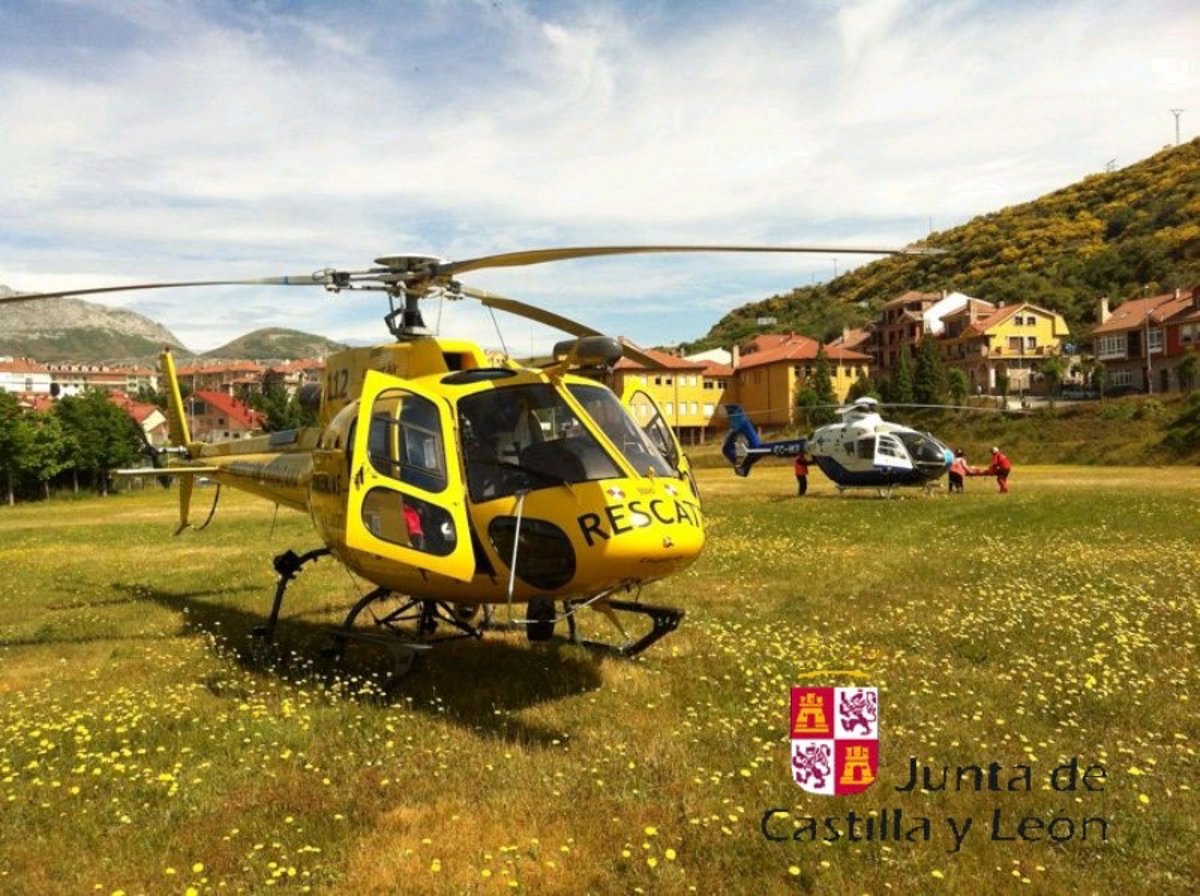 El helicóptero ha tomado tierra en una zona cercana para que los rescatadores pudieran inmovilizar en una camilla a la víctima, un varón 41 años e iniciales C.N.Y, y a continuación, lo han trasladado hasta el campo de fútbol de Riaño, donde esperaba un helicóptero medicalizado de Sacyl que ha evacuado finalmente al herido al Complejo Asistencial de León.