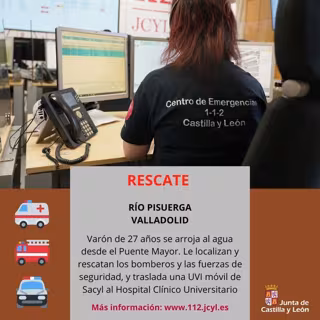 El 1-1-2 avisó de este rescate a los Bomberos de Valladolid, al Cuerpo Nacional de Policía y al centro coordinador de urgencias (CCU) de Emergencias Sanitarias - Sacyl, desde el que se envió una UVI móvil. También fue activado el centro coordinador de emergencias de la Junta de Castilla y León para el seguimiento del incidente y ante la posibilidad de necesitarse medios suplementarios en la intervención.