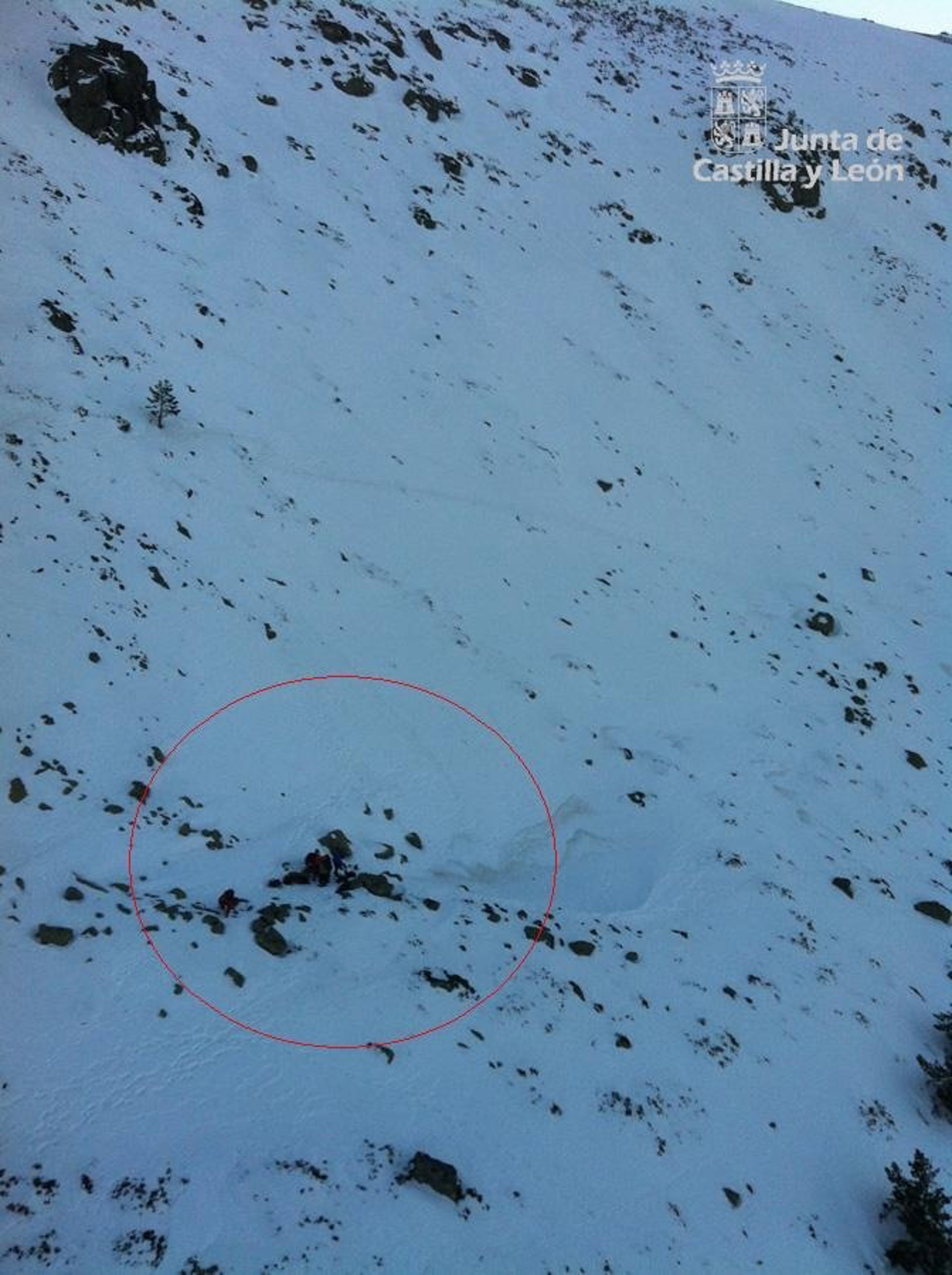 La operación dio comienzo a las 17.02 horas, tras recibirse en el Servicio de Emergencias Castilla y León 112 una llamada que indicaba que varias personas que realizaban una travesía han resbalado por la nieve en el paraje Cerradillas, una zona inaccesible para vehículos por tierra, al norte del Pico Cabeza de Hierro Menor, en las proximidades del Puerto de Cotos, zona limítrofe entre Segovia y Madrid.