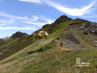 Una vez con el herido a bordo, el helicóptero ha volado hasta Posada de Valdeón, donde le ha recogido una ambulancia de Emergencias de Sacyl que le ha trasladado al centro de salud de Riaño para ser atendido de la lesión.