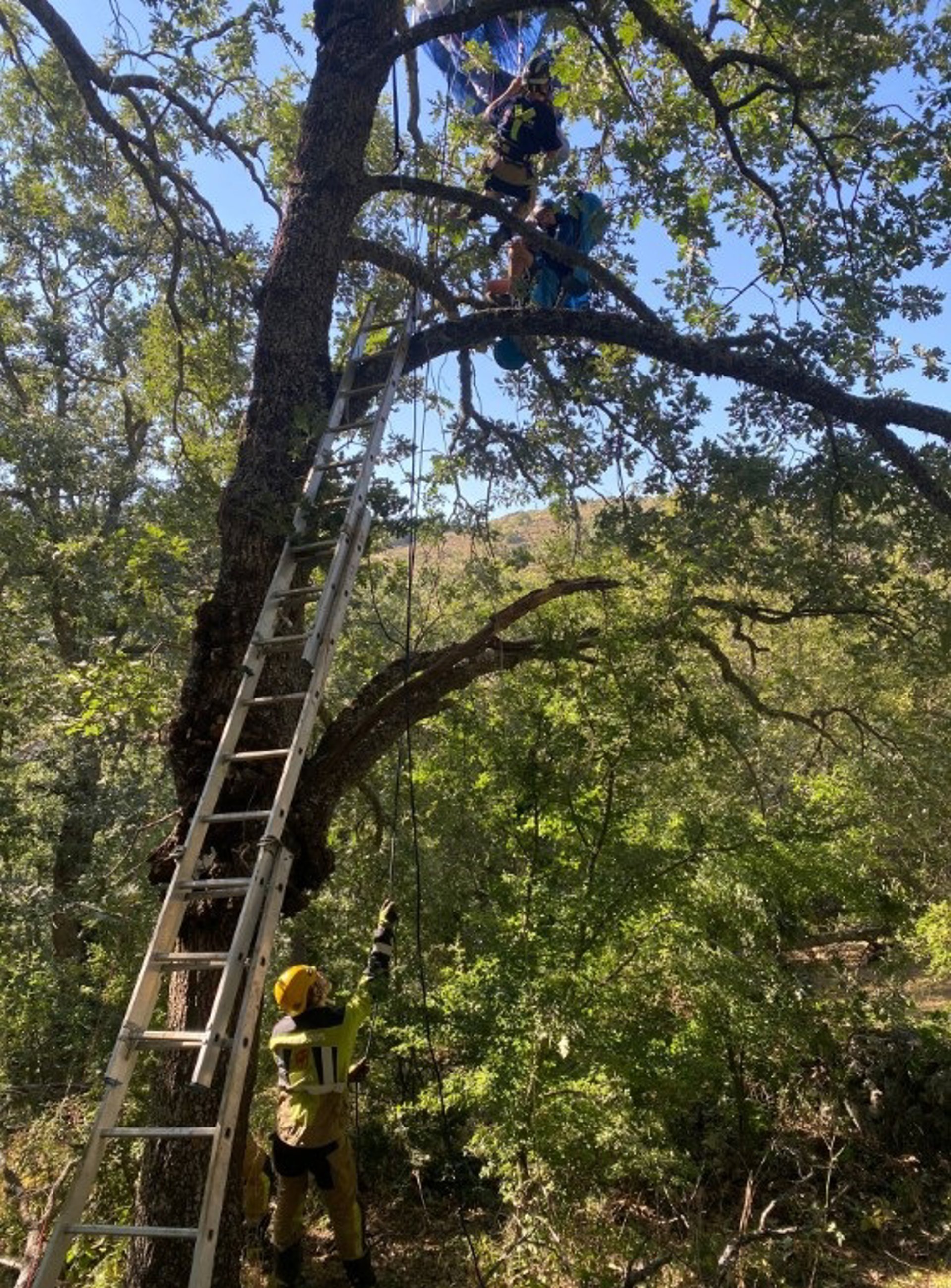 Rescate de un parapentista atrapado en un árbol. - BOMBEROS ÁVILA