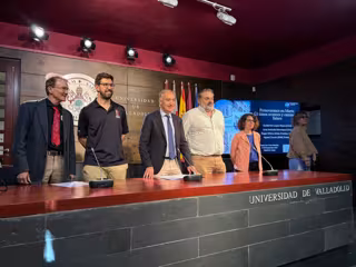 Así lo han presentado el rector de la UVa, Antonio Largo, acompañado por los organizadores del evento e investigadores del grupo de la UVa 'Erica', Guillermo López y José Antonio Manrique; los investigadores principales del instrumento SuperCam, Roger Wiens, de los Alamos National Laboratory (USA) y Agnes Cousin (INP Toulouse).