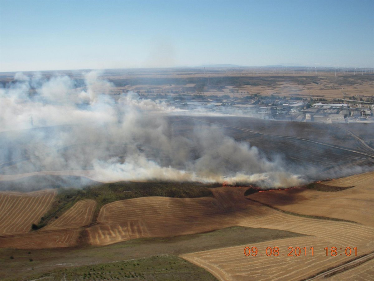 La superficie que, según las estimaciones, se ha podido ver afectada por las llamas alcanza cerca de 120 hectáreas, en su mayor parte de rastrojos y alguna zona de pinar.