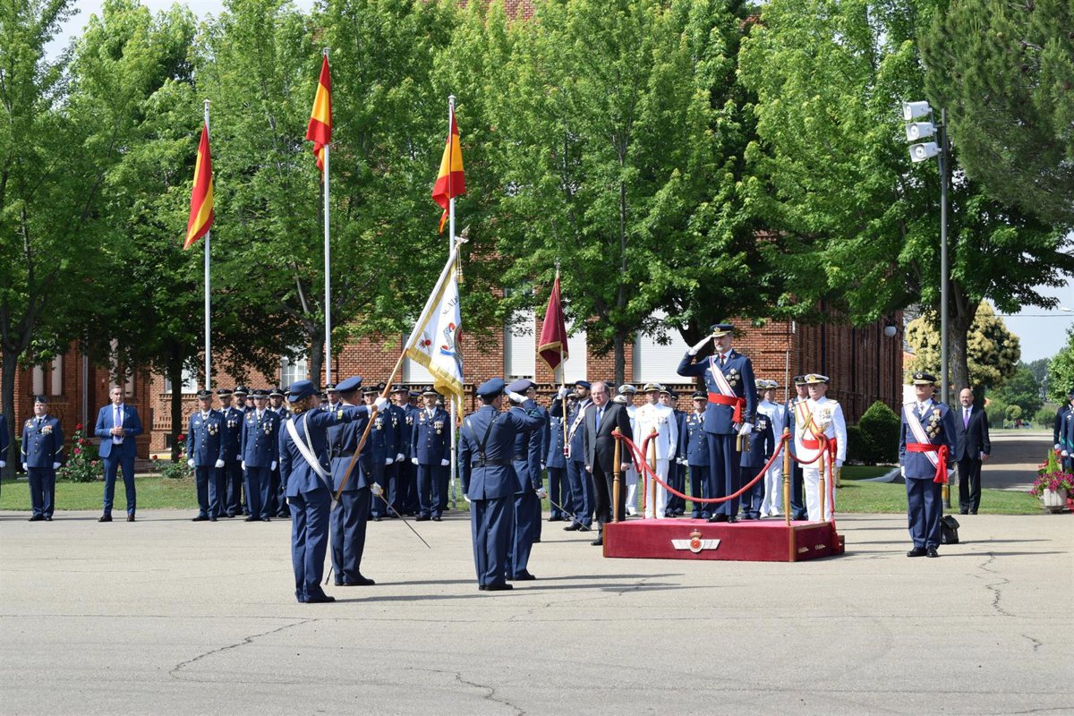 El acto ha comenzado con la llega del Rey acompañado del director de la Academia Básica del Aire, el Coronel José Antonio Gutiérrez, y ambos se ha dirigido al centro de la Plaza de Armas donde se desarrollaba el evento para recibir los Honores de Ordenanza y, posteriormente, pasar revista al Escuadrón de Alumnos.