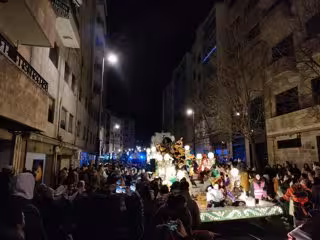 En esa parte de la Cabalgata se ha sumado la carroza 'Casita de campanilla', que mide diez metros de largo y que está adornada por más de 6.000 bombillas led de varios colores, y la Agrupación Musical La Expiración, formada por 55 músicos, y que han dado paso a los tronos reales de Melchor, Gaspar y Baltasar y sus acompañantes.