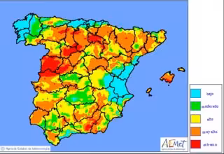 Las zonas donde el riesto es "extremo" es en la práctica totalidad de la provincia de Salamanca, y en el suroeste de Ávila, así como en el este de la provincia de Valladolid, y en diversas zonas del norte de León, y de la parte norte y sur de Palencia y Burgos.
