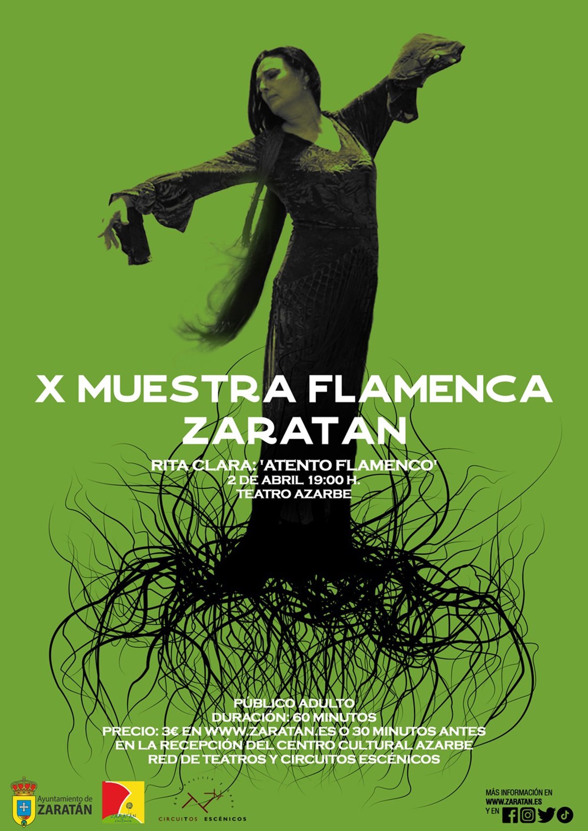 Rita Clara presentará este sábado, 2 de abril, a la 19.00 horas en el 'Teatro Azarbe de Zaratán (Valladolid), en la 'X Muestra Flamenca Zaratán', su nuevo espectáculo '¡Atento!... Flamenco'.