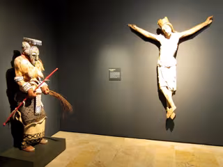 Se entiende de esta forma que el visitante de la muestra pueda encontrar en una misma sala una figura africana coronada por una máscara de la cultura 'Bushoong', la talla de un cristo policromado de la época medieval o una tabla con símbolos coránicos.