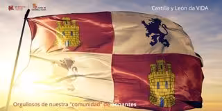 Bandera de Castilla y León con el mensaje del Chemcyl sobre la importancia de donar sangre para dar vida - @DONASANGRECYL