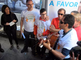 Se da la circunstancia que el músico en cuestión, que hoy se ha acercado hasta la carpa electoral del Partido Popular en la que se encontraba la vicepresidenta, es el mismo que el pasado martes tocó y cantó para el candidato a la Presidencia del Gobierno por Ciudadanos, Albert Rivera.
