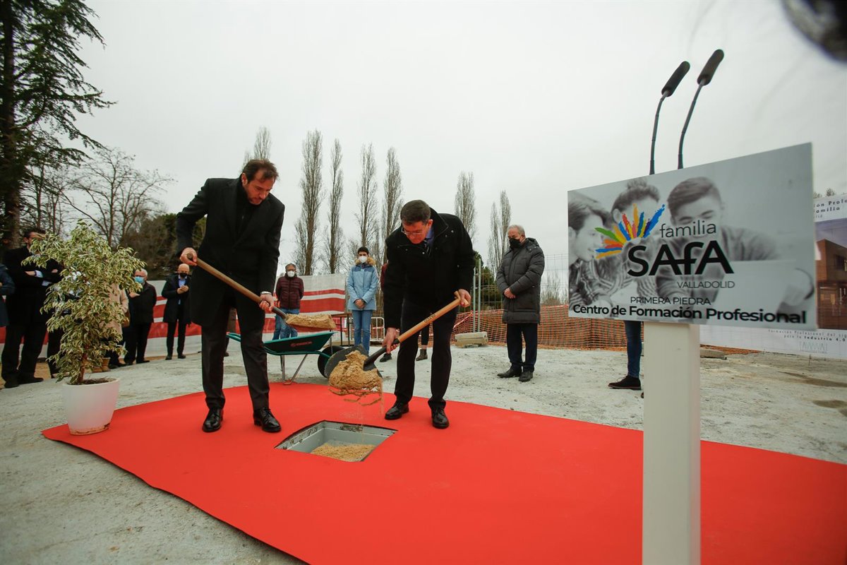El Superior General de los Hermanos de la Sagrada Familia, Francisco Javier Hernando, y el alcalde de Valladolid, Óscar Puente, han presidido la colocación de la primera piedra, en un acto que ha contado también con la presencia del director general de Formación Profesional de la Junta, Agustín Sigüenza; y de la presidenta de CEOE Valladolid, Ángela de Miguel.