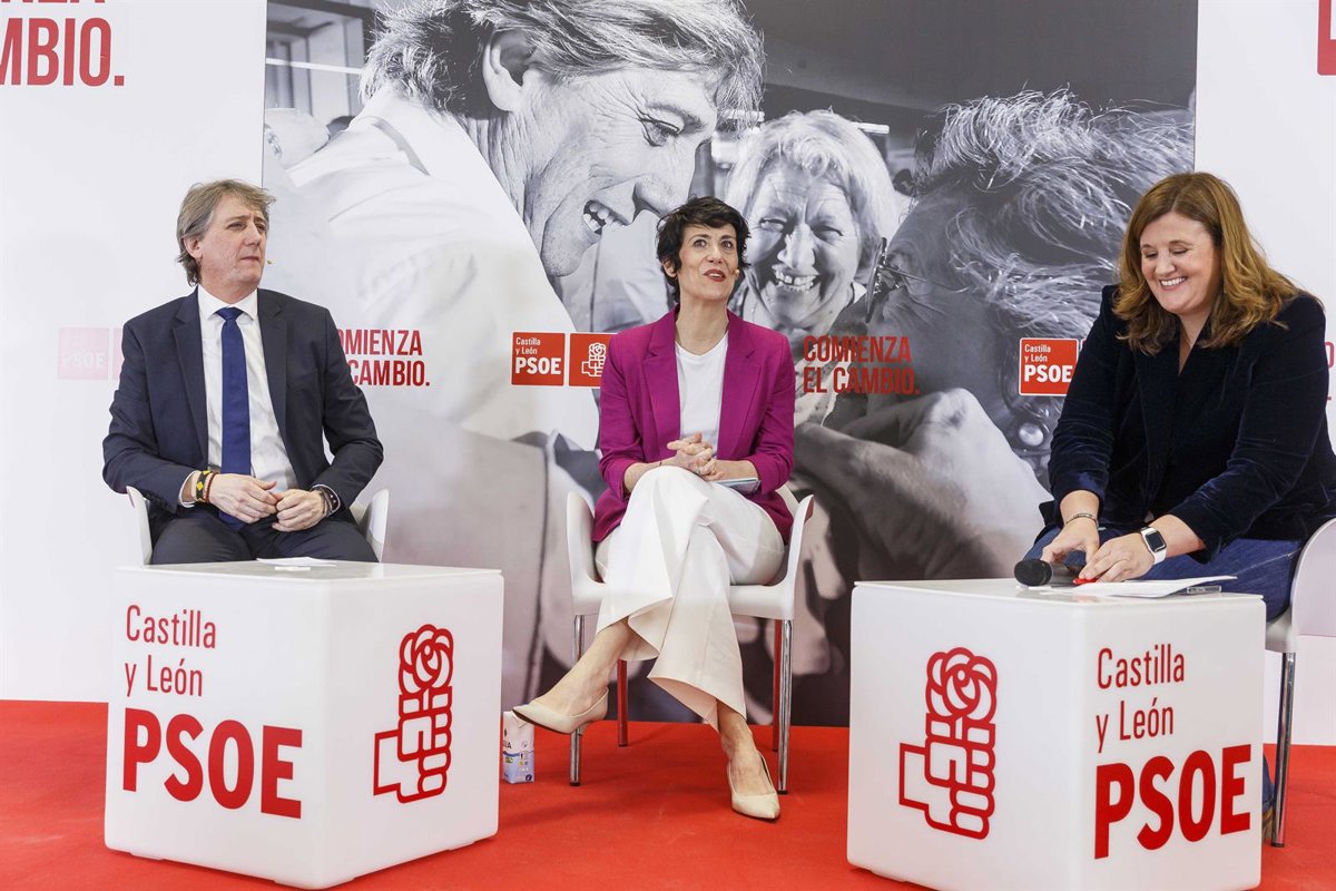 (I-D) El secretario autonómico del PSOE y candidato a la Presidencia de la Junta, Carlos Martínez; la ministra de Inclusión, Seguridad Social y Migraciones, Elma Saiz y la portavoz del PSOE en el Ayuntamiento de Segovia, Clara Martín - Nacho Valverde - Europa Press