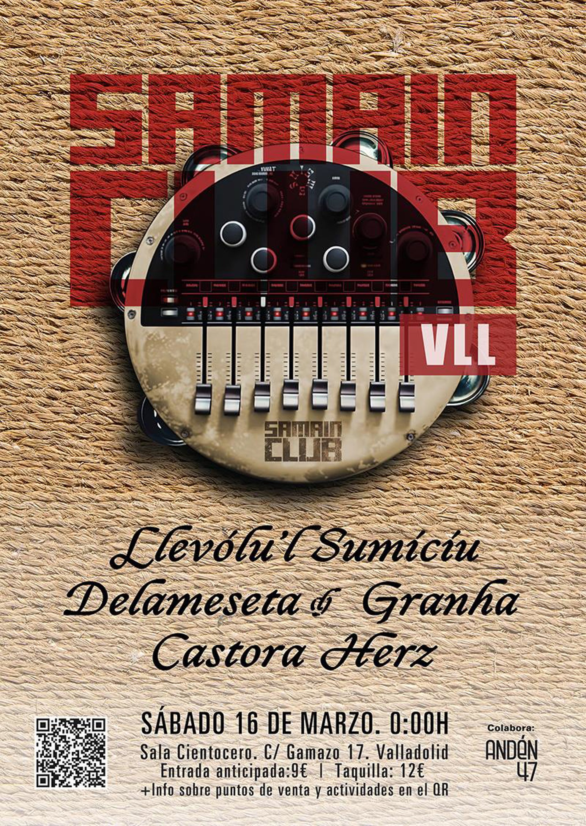 Aunque ésta sea la primera fiesta exclusivamente con DJ de Folktrónica Ibérica, será el tercer evento Samain Club en la capital del Pisuerga y se completará con el taller de percusión tradicional a cargo del músico berciano Sergio López, panderetero y multipercusionista que ha colaborado con grupos como El Naan o Fetén Fetén, además de sus numerosos proyectos personales.