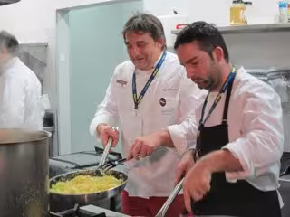 En este caso, en la jornada inaugural de este lunes,la delegación con responsables de los fogones de 16 restaurantes salmantinos, con Fran Vicente como jefe de cocina, ha elaborado una carta para 300 profesionales del sector con materias primas de la tierra.