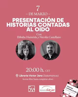 La librería Víctor Jara de Salamanca acogerá este jueves la presentación de 'Historias contadas al oído' de Ebbaba Hameida y Nicolás Castellano, una obra en la que ambos periodistas reflexionan sobre las migraciones y los derechos humanos.