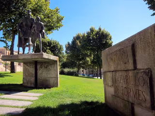 La ciudad tormesina recuerda a ese pícaro personaje con una escultura, junto al verraco y el Puente Romano, una pieza realizada por el artista Agustín Casillas en 1974 y que se compone de dos figuras, el joven Lázaro y su amo ciego.