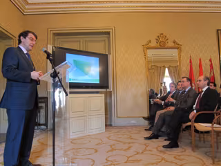 El presidente del Patronato Provincial de Turismo y alcalde de Salamanca, Alfonso Fernández Mañueco, y el presidente de la Diputación de Salamanca, Javier Iglesias, han presentado esta mañana este expositor con el que el Patronato acude a la XV edición de la Feria de Turismo de Interior, que se celebrará en Valladolid entre los días 24 y 27 de noviembre.