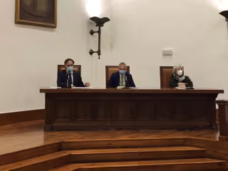 El alcalde de Salamanca, Carlos García Carbayo, el rector de la USAL, Ricardo Rivero, y la subdelegada del Gobierno en Salamanca, Encarnación Pérez, de izquierda a derecha, en rueda de prensa este martes. - EUROPA PRESS