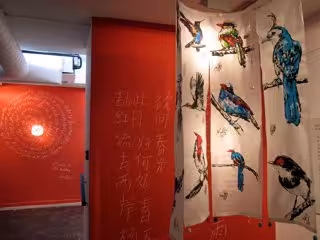 En cuanto a la exposición física, los poemas de Melero se exhiben por los muros de la sala junto a las creaciones pictóricas de Miguel Elías, que ha utilizado técnicas chinas y simbología del país oriental para acompañar los versos.