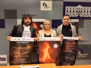 La alcaldesa de Garray, María José Jiménez, junto a los miembros de Tierraquemada Rubén García y Alberto de la Cruz, han dado más detalles de la noche de Samaín, que simboliza el tránsito del mundo de la luz, al mundo de la oscuridad, del mundo de los vivos al mundo de los muertos.