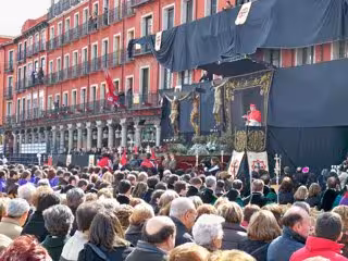 El Sermón de la Siete Palabras abarrota la Plaza Mayor de Valladolid después de que los jinetes a caballo llamaran a los ciudadanos