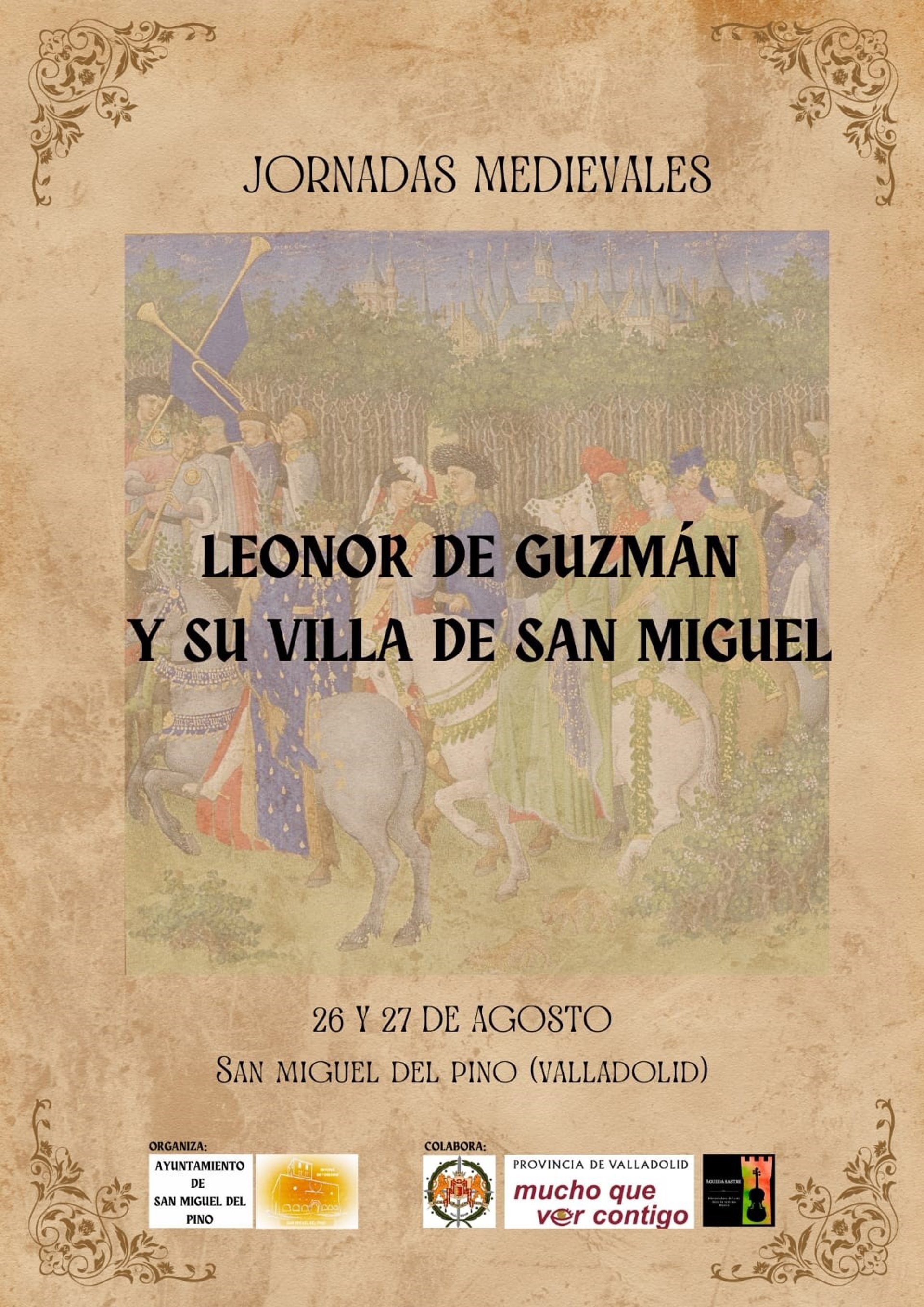 El objetivo de estas jornadas que se realizarán el último fin de semana de agosto en San Miguel del Pino es dar a conocer la figura histórica de Doña Leonor de Guzmán y su unión con la localidad, así como implicar a los visitantes y sanmigueleños en la vivencia activa de la historia y en el conocimiento y valoración de su propio patrimonio.
