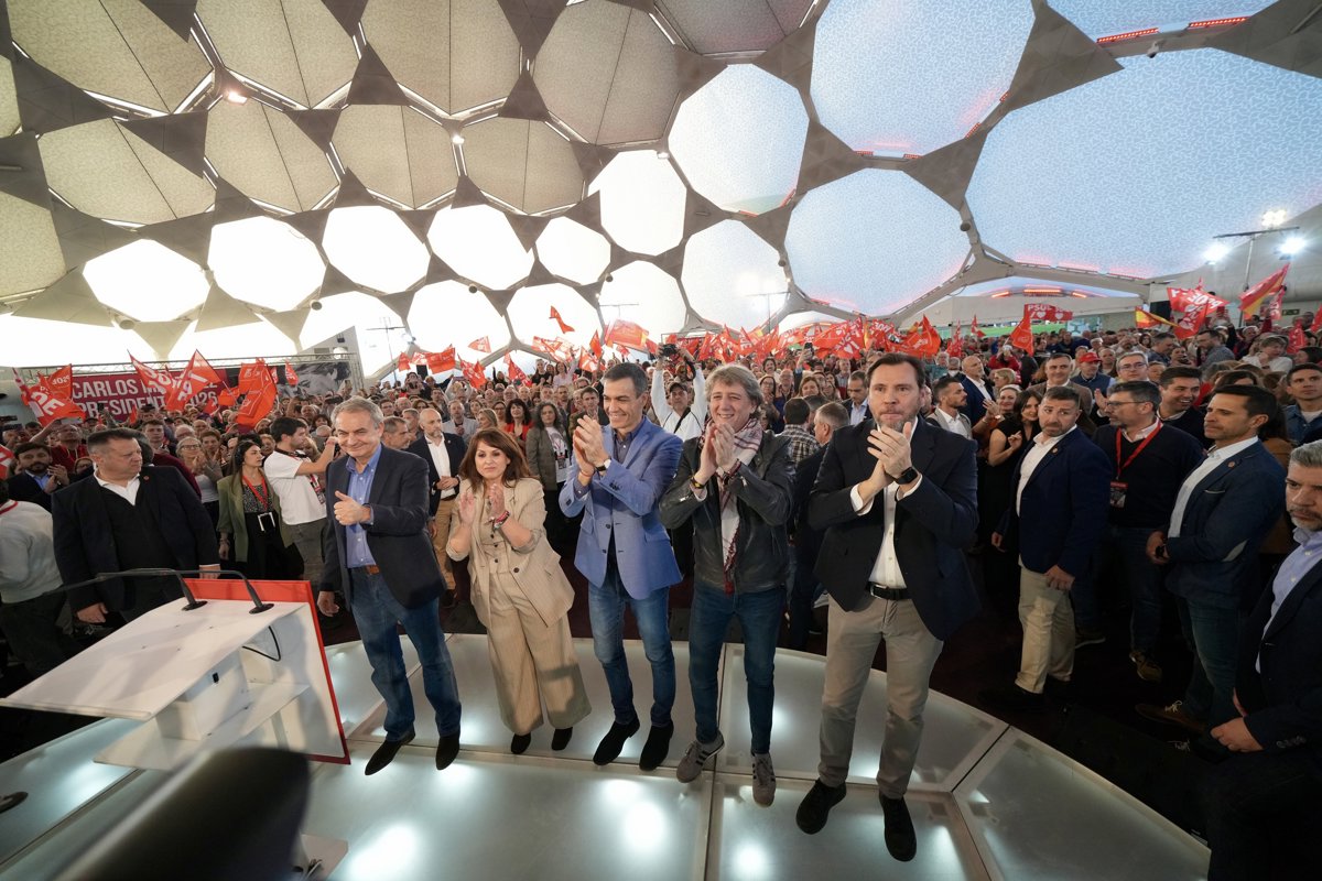 (I-D) El expresidente del Gobierno José Luis Rodríguez Zapatero; el presidente del Gobierno, Pedro Sánchez; el candidato del PSOE a la Presidencia de la Junta de Castilla y León, Carlos Martínez y el ministro de Transportes y Movilidad Sostenible, Óscar - Photogenic/Claudia Alba - Europa Press