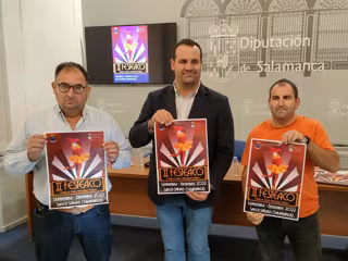 El alcalde de Sancti Spíritus, Bienvenido Garduño, el diputado provincial de Cultura, David Mingo, y el animador sociocultural del municipio, Jesús Molinero, de izquierda a derecha, en la presentación del festival - EUROPA PRESS