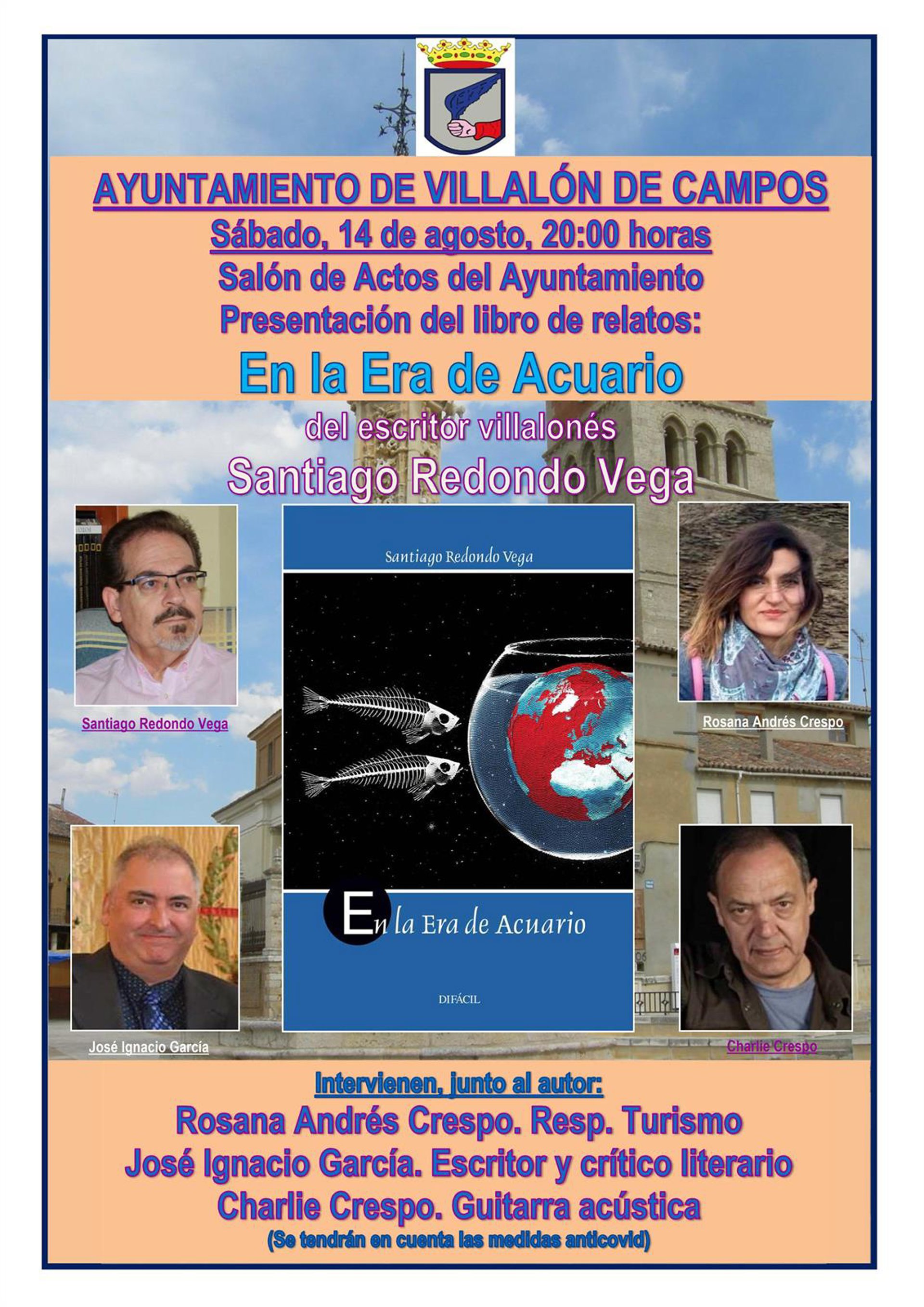 Archivo - Cartel de la presentación del libro de relatos 'En al era de Acuario', de Santiago Redondo Vega, en Villalón de Campos. - AYUNTAMIENTO DE VILLALÓN DE CAMPOS - Archivo