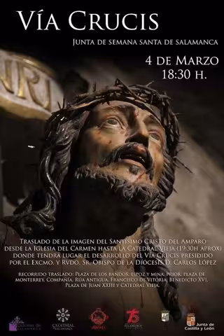 El Santísimo Cristo del Amparo presidirá este sábado, 4 de marzo, a partir de las 18.30 horas, el tradicional Vía Crucis de la Junta de Semana Santa de Salamanca, que con motivo de la celebración de su 75 aniversario tiene "un carácter extraordinario".