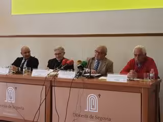 Gonzalo Santonja ha expresado su opinión en el acto de presentación de las piezas que la Diócesis de Segovia aporta a la edición 2024 de 'Las Edades del Hombre', que ha presentado el obispo, César Franco, y del que han dado detalles técnicos el secretario general de la Fundación Las Edades del Hombre, Enrique Martín Lozano, y el delegado de Patrimonio de la institución eclesiástica segoviana, José María Rubio.