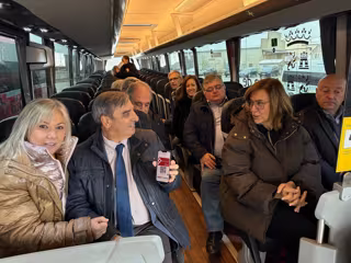 El consejero (2I) y la presidenta de la Diputación de Palencia (D) en un autobus. - JCYL