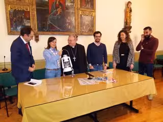 El obispo de Palencia, Manuel Herrero, acompañado de la presidenta de los Scouts en Palencia, Judith González; el alcalde de Palencia, Alfonso Polanco, y el director General de Juventud, Eduardo Carazo, entre otros, ha presentado este lunes el programa que se ha realizado para el citado evento que reunirá durante este sábado a más de 600 jóvenes en el encuentro nacional.