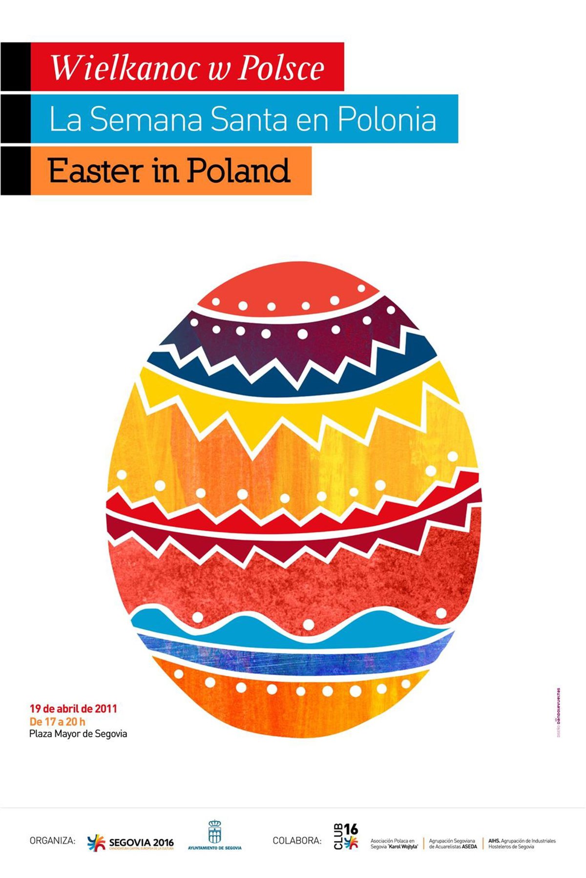 Con este fin, Segovia 2016 ha organizado una actividad para difundir las costumbres que se siguen en Semana Santa en Polonia, que tendrá lugar el martes, 19 de abril, en la Plaza Mayor de Segovia de 17.00 a 20.00 horas.