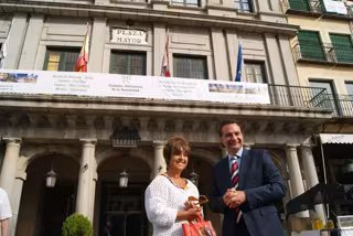 El alcalde, que ha posado junto a ella con la edil de Patrimonio Histórico y Turismo, Claudia de Santos, ha explicado en declaraciones recogidas por Europa Press que con esta banderola gigante se pretende exhibir el potencial de las Ciudades Patrimonio, informar a los ciudadanos de los territorios que forman parte del Grupo y festejar el aniversario.