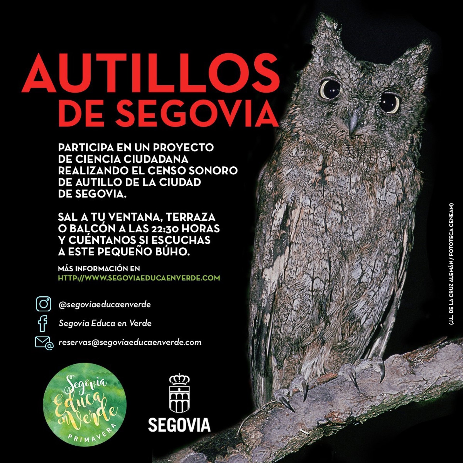 El programa de educación ambiental del Ayuntamiento, 'Segovia Educa en Verde', invita a los segovianos a participar desde sus casas en un proyecto de ciencia ciudadana para elaborar el mapa sonoro de distribución del autillo europeo en la ciudad.