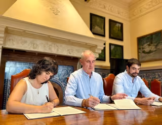 El regidor segoviano ha estado acompañado durante la firma por el concejal de Sostenibilidad Ambiental, Gabriel Cobos.