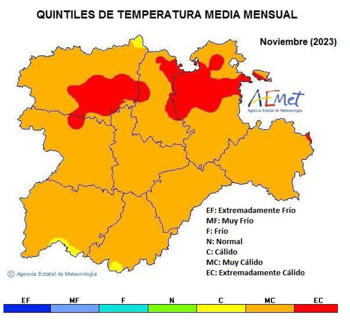 Mapa elaborado por la Aemet sobre el balance del mes de noviembre de 2023 en CyL - @AEMET_CYL