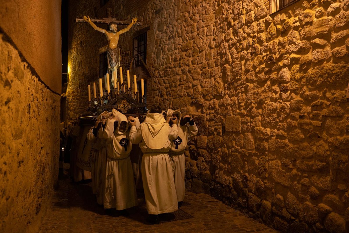 Avisan así que ya es hora de la Procesión de los Pasos, otro rito que luce esa mención especial y que desarrolla la misma cofradía, tal y como destaca el Portal de Turismo de Castilla y León de la Junta. Sobre las 7.30 horas del Viernes Santo, la comitiva parte de la Capilla de Santa Nonia para recorrer la ciudad hasta la tarde, en un recorrido en el que los cofrades portan los trece conjuntos escultóricos de la hermandad y recrean momentos de la Pasión, incluida la muerte de Jesucristo en la cruz.