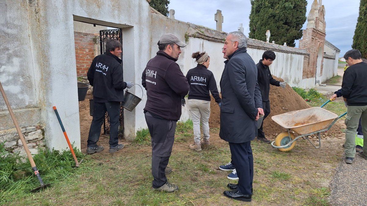 Sen durante su visita a los trabajos de exhumación en una fosa del cementerio de Mojados. - DEL GBNO EN CYL