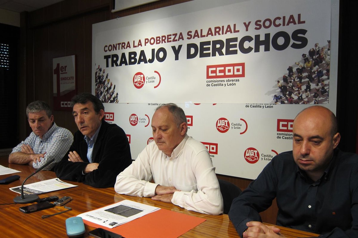 Los secretarios de UGT y CCOO en Castilla y León, Faustino Temprano y Ángel Hernández, respectivamente, han hecho este viernes un llamamiento a la participación en las manifestaciones del 1 de mayo, "la única fiesta obrera en el calendario", desde el convencimiento de que hay "más motivos que nunca" para la reivindicación y para la movilización y para decir un "basta ya" a años de mentiras ya que, a pesar de lo que digan los datos macroeconómicos, en España no se ha salido de la crisis.