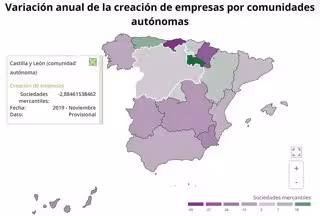 Estas cifras representan un descenso del 2,3 por ciento en el número de sociedades mercantiles creadas en noviembre en comparación con el mismo mes del año anterior, el menor descenso del país que registró una caída media del -8 por ciento. Los incrementos se han registrado en La Rioja (30 por ciento), Asturias (11,4 por ciento), Aragón (4,1 por ciento), País Vasco (3,4 por ciento) y Madrid (1,5 por ciento)