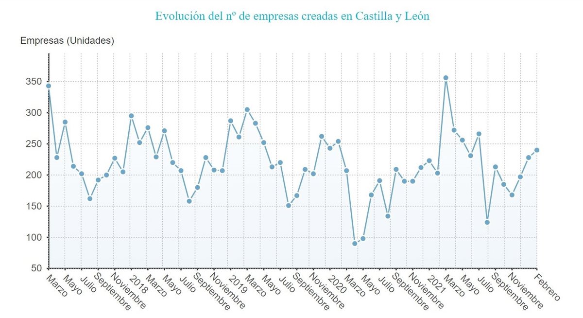 La comunidad autónoma de Castilla y León registró durante el pasado mes de febrero un total de 240 nuevas sociedades mercantiles (una sociedad anónima y el resto sociedades limitadas) con un capital suscrito por valor de 5,69 millones de euros, de ellos 5,65 desembolsados, según los datos aportados por el INE y recogidos por Europa Press.