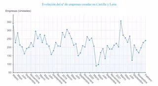 Gráfico de elaboración propia sobre la evolución de las empresas creadas en CyL hasta febrero de 2022 - EPDATA