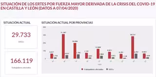 Las solicitudes de expedientes de regulación temporal de empleo (ERTE) en Castilla y León suman 29.733 (29.695 ante la Junta y 38 ante el Ministerio de Trabajo y Economía Social), con 166.119 trabajadores potencialmente afectados (165.567 y 552 respectivamente), según los datos facilitados este martes por el Ejecutivo autonómico.