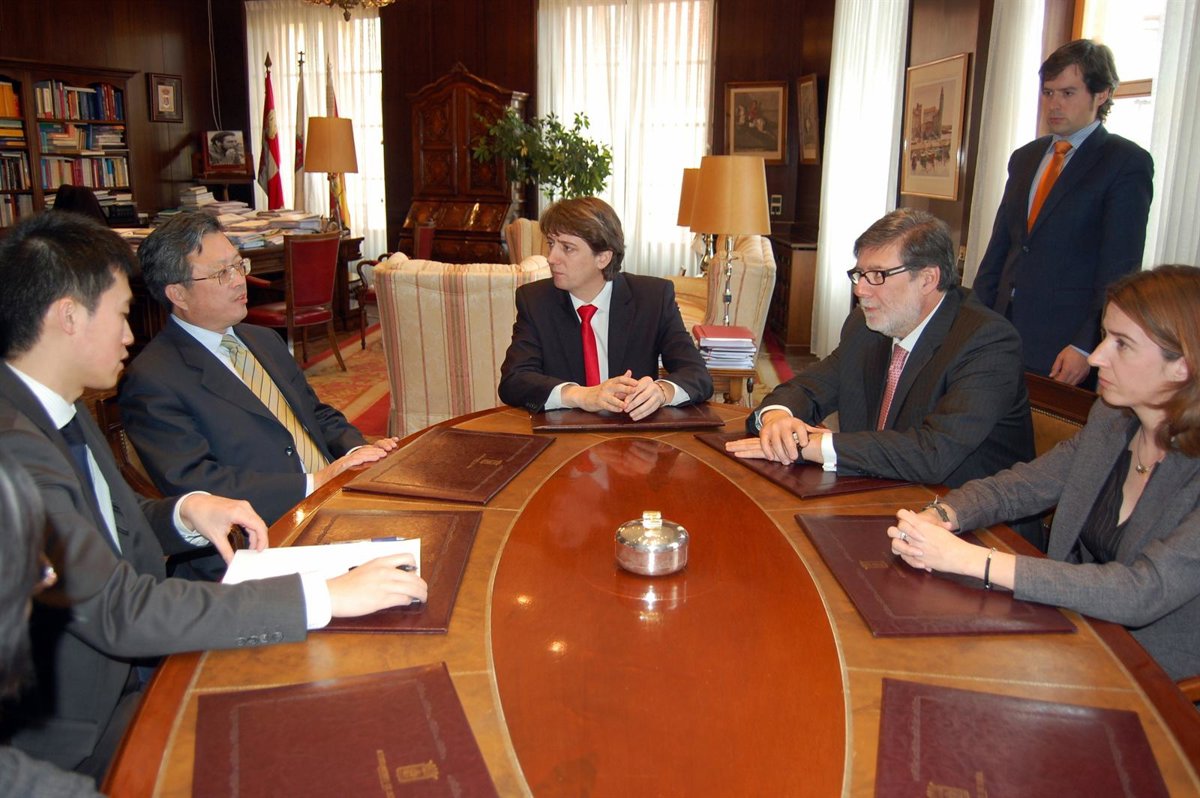 El alcalde de Soria, Carlos Martínez, ha recibido este viernes al embajador de China, Zhu Bangzao, en lo que pretende ser "una primera toma de contacto" para la implantación de iniciativas empresariales chinas en la provincia de Soria. Martínez se ha referido a la posibilidad de establecer un Acuerdo Marco de colaboración para intentar atraer inversión china en el desarrollo empresarial del Polígono de Valcorba.